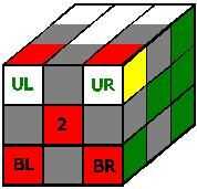Tenga en cuenta que UL y UR a ser cambiadas. La «acción» que ocurre en la cara y el lado derecho. El objetivo de los tres 1 º mueve: BL mantenerse donde está, pasar BR a la original posición de UL & UR para bajar la parte posterior derecha.