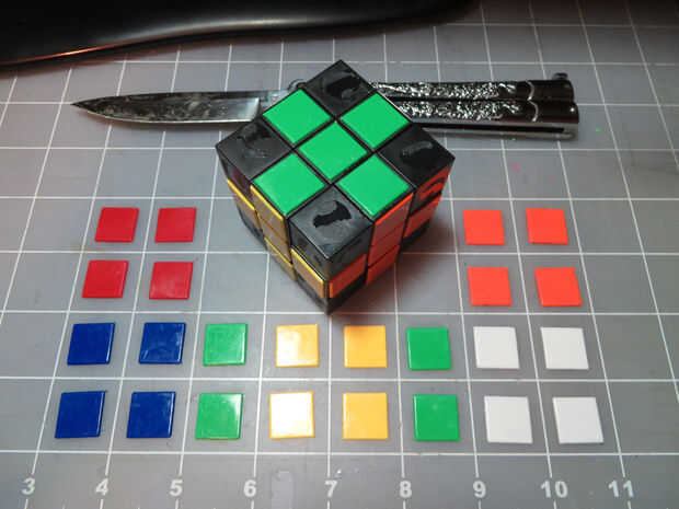 Lo que instalaron a mi cubos, tenían una pequeña plaza de plástico coloreada pegada sobre cada cara.