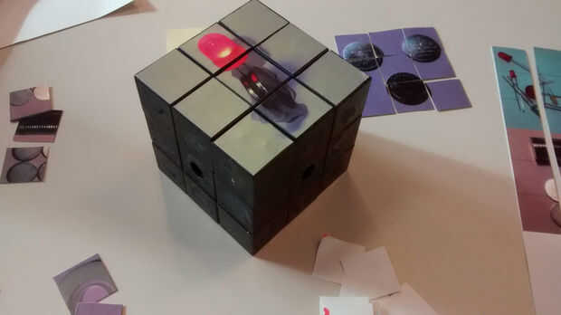 Cuando se prepara para la etiqueta engomada, encontré útil para recortar sólo un lado de las etiquetas engomadas de los cubos a la vez. Luego pongo los cuadrados cortados en la forma que iban a ser pegada en el cubo. Haciendo esto, puedo asegurar que cada etiqueta entró en el lugar correcto. (Empecé a hacer esto, después de una de las plazas había situado en la Plaza incorrecta sobre el cubo).
