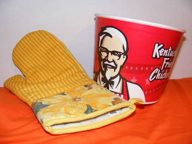 aquí es un disfraz de Halloween fue hace unos años. Mi hijo era un pollo, así que decidí ir con un tema. Este traje me costó $2 como tenía sobre todo todo en mano. El cubo fue un antiguo contenedor de goma que compró a costco hace unos años, y sólo p