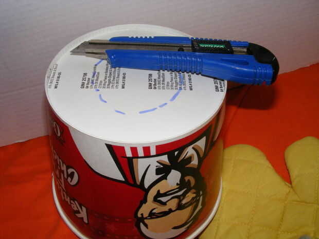 aquí es un disfraz de Halloween fue hace unos años. Mi hijo era un pollo, así que decidí ir con un tema. Este traje me costó $2 como tenía sobre todo todo en mano. El cubo fue un antiguo contenedor de goma que compró a costco hace unos años, y sólo p