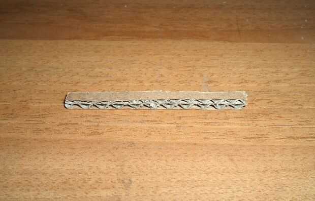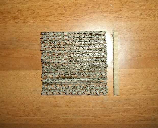 Unte el pegamento en él demasiado y añadir otra tira y continuar de esta manera, siempre dejando la parte ondulada en el lado, hasta obtener un cuadrado los 8x8cm (3.14 x 3.14 pulgadas).