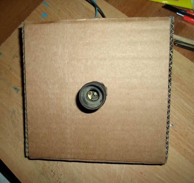 Haz un sostenedor de la lámpara y trazar el contorno de la misma en el centro de la parte superior de la caja, luego recórtalo. Usted necesitará este orificio para el sostenedor de la lámpara.