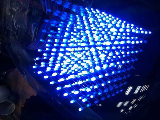 - Función seno - en lugar de usar brillo, observa el LED más cercano a ese valor. Pensar en una onda sinusoidal que se superpone sobre el lado del cubo y el redondo para el LED más cercano pero como esto se mueve muy rápido, da la apariencia de una onda senoidal agradable. También incorporamos una función bivariada que constantemente es morphing como los bucles de programa a través de y nos permite cambiar la dirección de este particular la onda de seno.