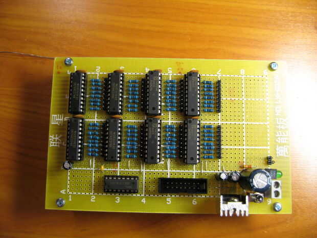 Para cada cierre del IC (74HC574), hay un 100nF (0.1uF) condensador de cerámica. Estos son condensadores de reducción de ruido. Cuando la corriente en los pines de salida se enciende y se apaga, esto puede causar la tensión disminuya lo suficiente como para meterse con el funcionamiento interno de los circuitos integrados, para una fracción de segundo. Esto es poco probable, pero es mejor prevenir que lamentar. Depuración de circuitos con problemas de ruido puede ser muy frustrante. Además, condensadores de hacen el circuito que mirar mucho más fresco y profesional! Los condensadores de 100nF Asegúrese de que hay algunos actual disponible justo al lado de la IC en caso de una bajada brusca de tensión. Hemos leído en alguna parte que es común de ingeniería práctica de colocar un condensador de 100nF junto a cada IC, "Usar como caramelo". Tendemos a seguir ese principio.