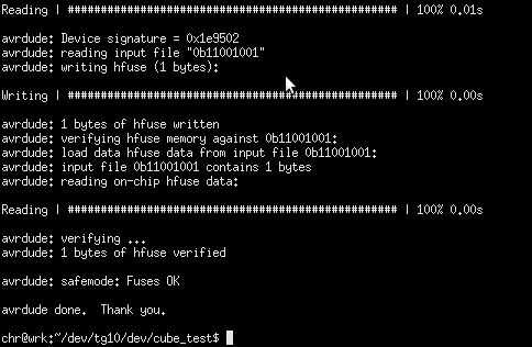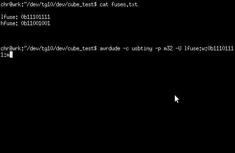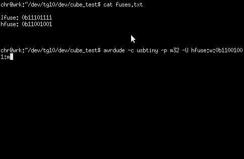 - AVRDUDE - c usbtiny -p m32 - U hfuse:w:0b11001001:m