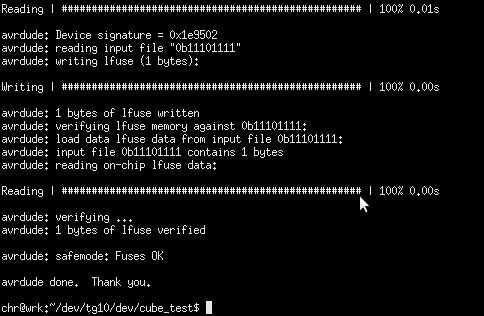 - AVRDUDE - c usbtiny -p m32 - U lfuse:w:0b11101111:m