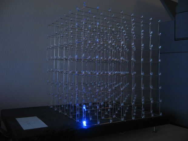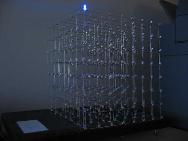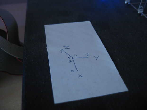 ¿Por qué ¿utilizamos el eje de Y para la izquierda y X para atrás/adelante? ¿No debería ser al revés? Sí, lo creo demasiado. Hemos diseñado el el cubo del LED para ser visto desde el "frente" con los cables saliendo de la parte posterior. Sin embargo, esto era muy práctico al tener el cubo de LED en el escritorio, era más práctico tener los cables que salen al lado y teniendo cubo y controlador de lado a lado. Todas las funciones de efecto están diseñadas para ser vistos desde esta orientación.