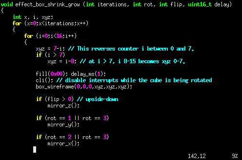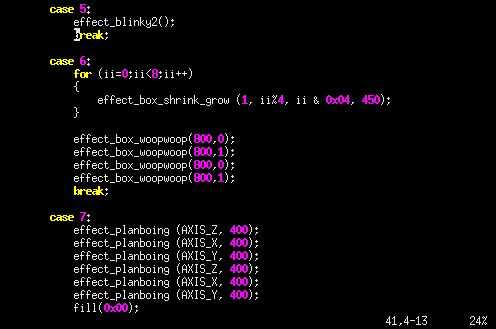 La otra función implicados en el efecto de caja de alambre es effect_box_woopwoop(). El nombre woopwoop solo sonaba natural cuando vio por primera vez el efecto que se procesa en el cubo ;)