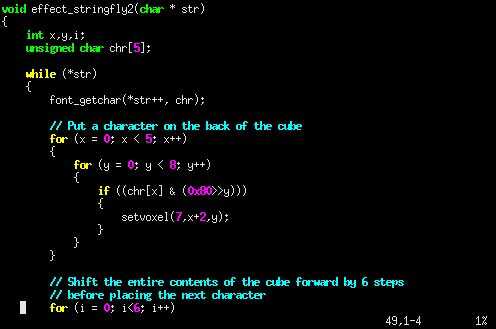 La stringfly2 función toma cualquier cadena de caracteres ASCII y muestra como personajes volando por el cubo.