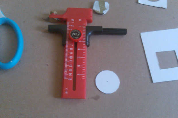 Utilizando la brújula Xacto, cortar un círculo en la cartulina que mide aproximadamente 1,5 pulgadas de ancho.
