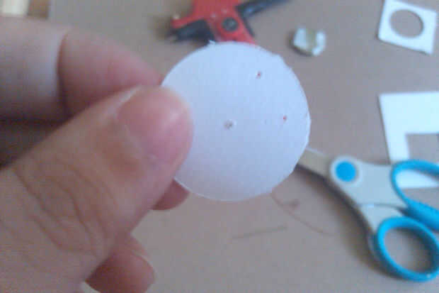 Utilizando un pin, haga agujeros en el centro del círculo y cerca del borde exterior. Debería verse como la imagen.