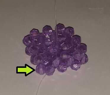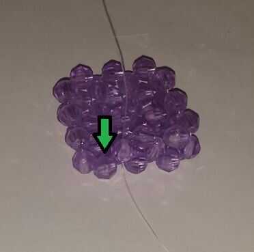4. Pase el extremo derecho (pintado) en los granos de 2 siguiente