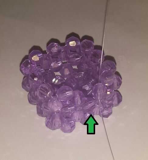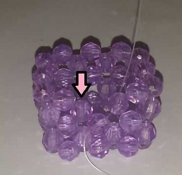 4. Pase el extremo derecho (pintado) en los granos de 2 siguiente