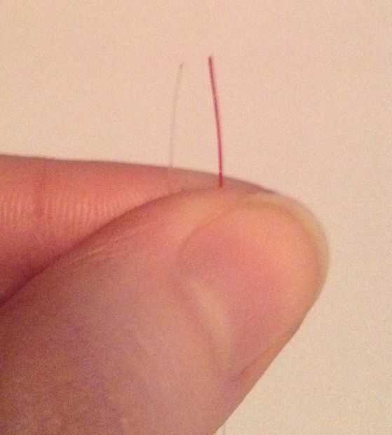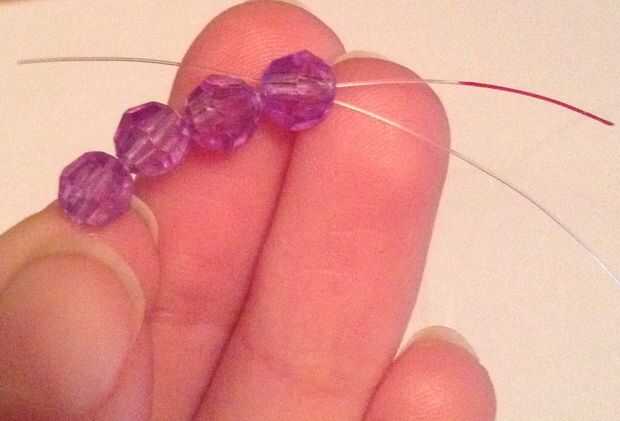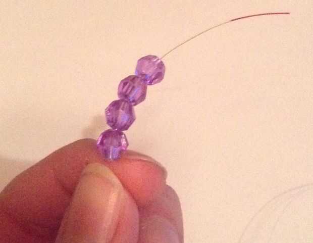 1. Ponga 4 abalorios en el extremo izquierdo (pintado)