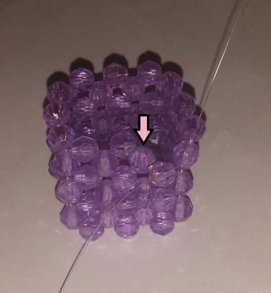 4. Pase el extremo derecho (pintado) en los granos de 2 siguiente