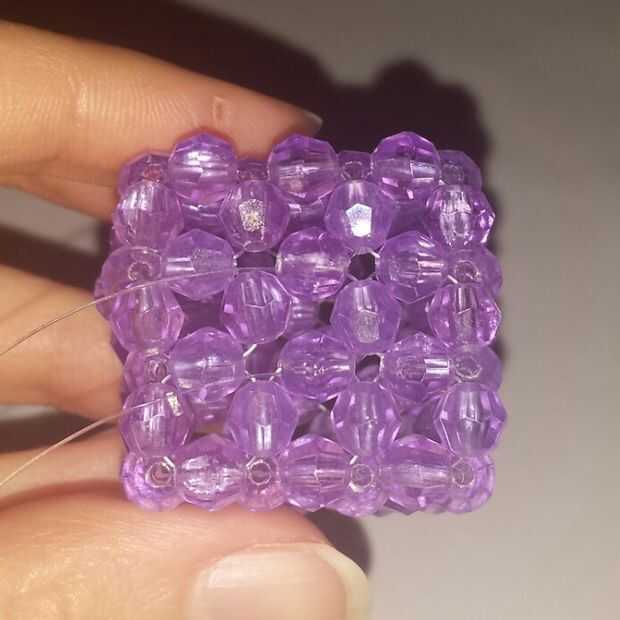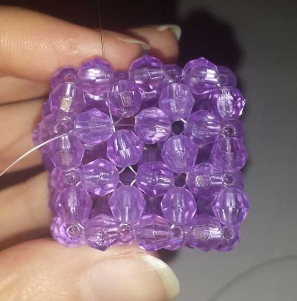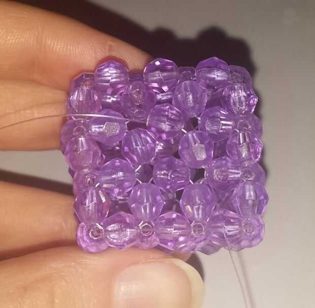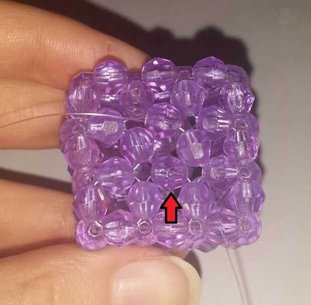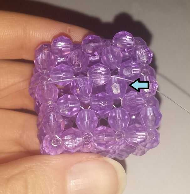 4. Pase el extremo derecho (claro) en los granos de 3 siguiente