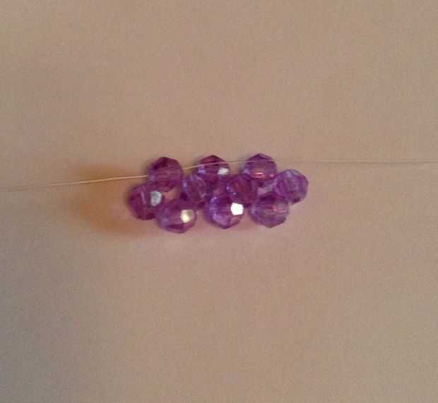 1. poner 3 abalorios en el extremo izquierdo (pintado)