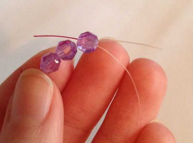 1. poner 3 abalorios en el extremo izquierdo (claro)
