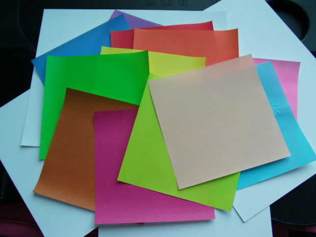 instrucciones:Paso 1: Se comienza por cortar un papel cuadrado origami en la mitad. sólo necesitamos la mitad de una hoja para cada unidad.Paso 2: Dobla el papel por la mitad en el eje horizontal y vertical. Pliegues bien y despliegue.Paso 3: Doble l