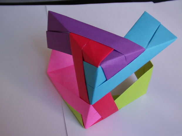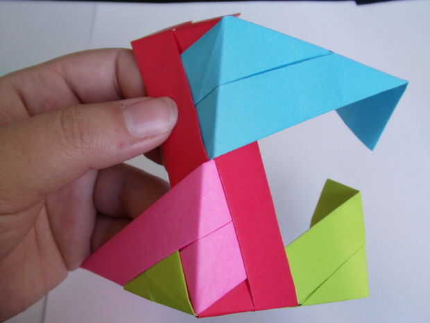 Continúe conectando piezas como esta hasta que todas las 12 unidades se utilizan y se forma un cubo.