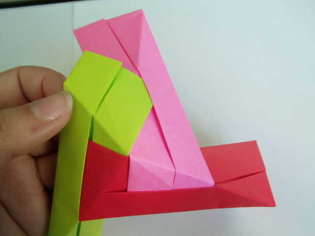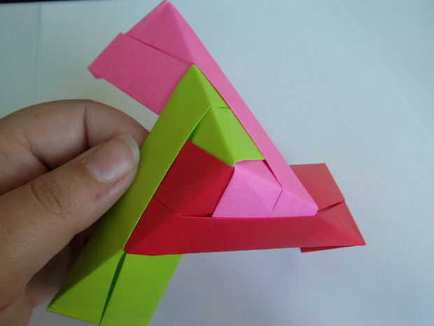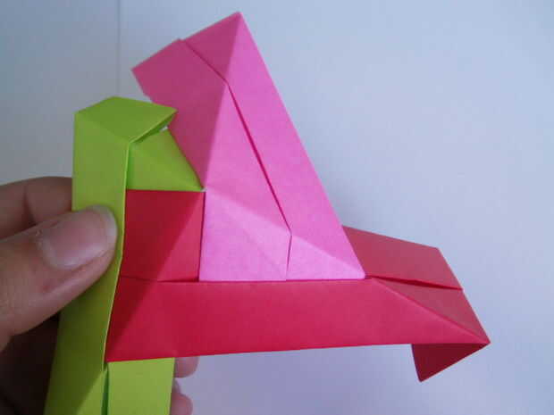 Ahora inserte la parte superior de la pieza 1 en el lado de 3 piezas para formar un punto triangular.