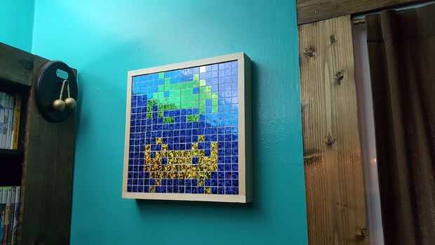 mantener tus videojuegos detrás del vidrio que sigue jugando incluso después de que usted los apaga.  Aquí es la manera que he encontrado para poner pixel arte en vidrio. Este método debería funcionar bien en cualquier superficie de vidrio normalment