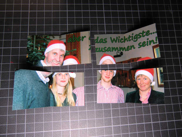 Abierto el cubo como se muestra en la foto tercera, corte su segundo gran cuadro como se muestra en la cuarta imagen. Abrirla en el centro otra vez, cortar una imagen más pequeña como se muestra en el quinto cuadro y pegarlo en el cubo. Voltee el cubo y pegar la última foto en el cubo.