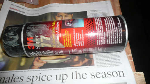 Mi mayor problema con el uso del pegamento del aerosol es que es un cemento de contacto. Rocíe en el bloque y rociar la parte posterior de la imagen y deja que sequen de ambos lados. Una vez que estés listo, pones la imagen en el bloque y su pegada permanentemente. Funciona muy bien, pero si hiciste como yo hice y rociar todos los lados de los bloques primero, usted tendrá problemas al tratar de alinear los bloques y adjuntar las fotos. Vemos que si toca un bloque a otro bloque que ha sido rociada, que también va ser adheridos permanentemente. Tienes que usar algo en el medio como papel de estaño como lo hice. (Véase el cuadro usando--papel aluminio abajo) Funciona, pero tienes que ser muy cuidadoso.
