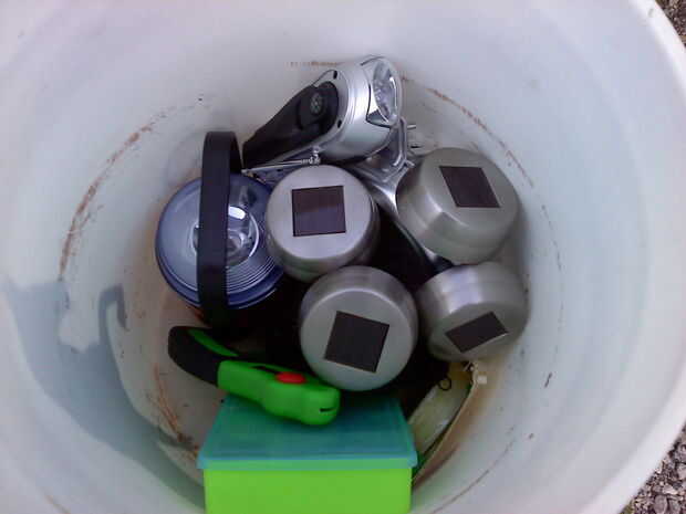 De pesca: Salí de mi cubo de luz Solar y recipiente en la mesa de picnic durante todo el invierno, que la primavera estaba lleno de agua y se dio cuenta del agua no había efectuado realmente la calidad de la luz. Nos gusta pescar así que mi siguiente uno se utilizará como un cubo de Minnow o para abordar sólo. Para pesca nocturna la iluminación solar es una ventaja añadida, NO vuelan bichos pululando la luz.