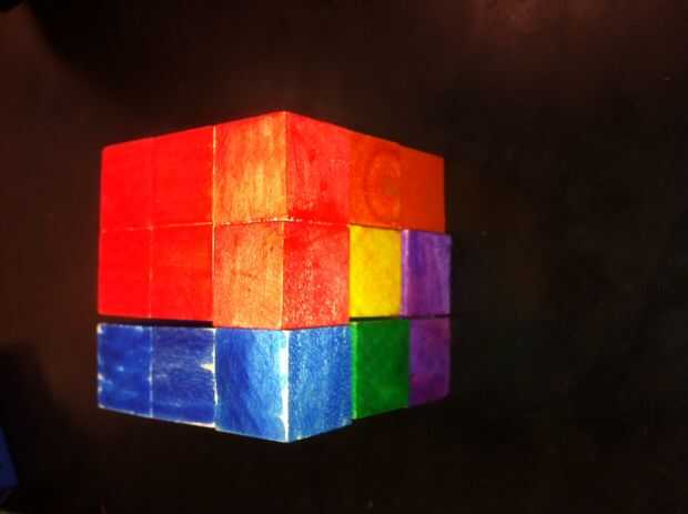 colocar finalmente la reb y azul en la parte superior en cualquier dirección no importa. El cubo es no completado.