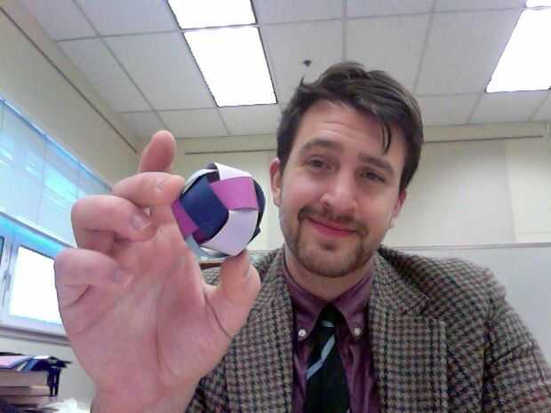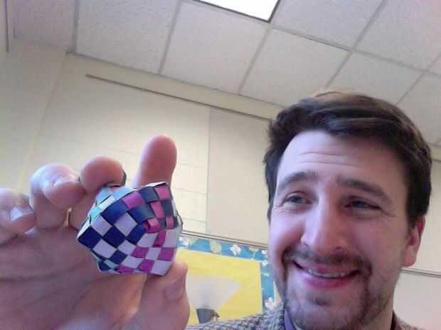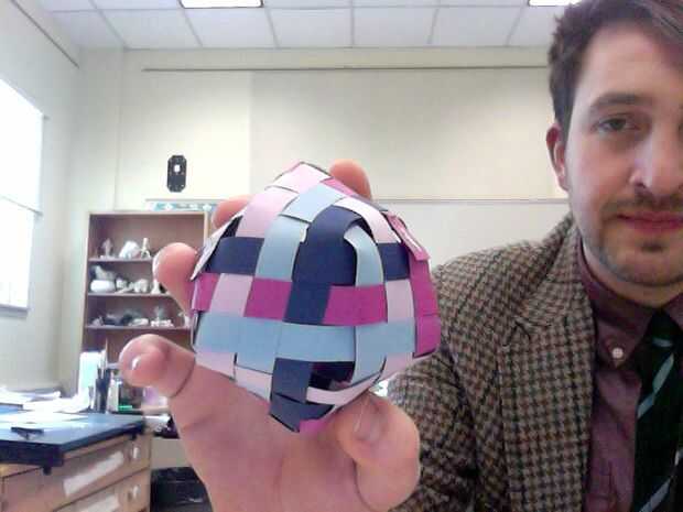 También he hecho una versión más pequeña con las tiras que la mitad del ancho y alrededor de dos veces (eliminando las grapas). Utilizando las tiras de 3 veces en 1/3 el ancho también hice un tejido más complejo. Supongo que podrían crearse indefinidamente tejidos cada vez más complejos.