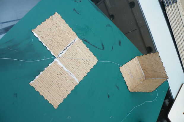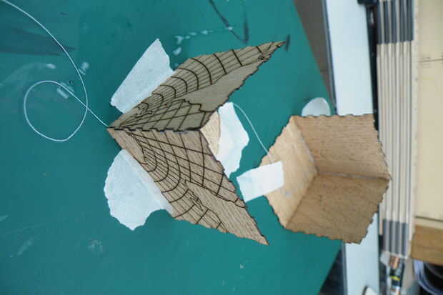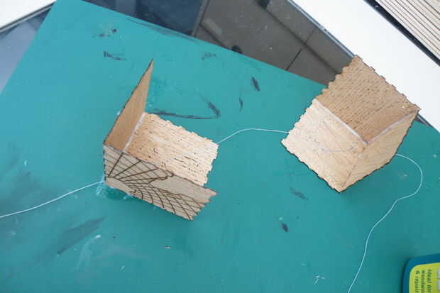 Es prácticamente imposible a una caja de una sola capa de chapa, cuando esté satisfecho con los arreglos, uso trozos de cinta adhesiva para sujetar las piezas como el pegamento seca.