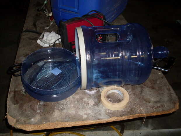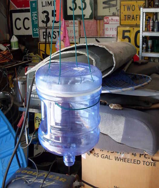 He conseguido esta jarra desde una oficina de amigos, tenía una grieta en ella. Una vez que estas botellas tienen grietas en ellos son sin valor como dispensadores de agua y algunos lugares a tirarles. Probablemente encontrarás algunos en pequeñas oficinas o incluso si le pides distribuidor local del agua (culligan, etc..). El tendedero tuve ahí porque es una de esas cosas que son sólo útiles para todo.