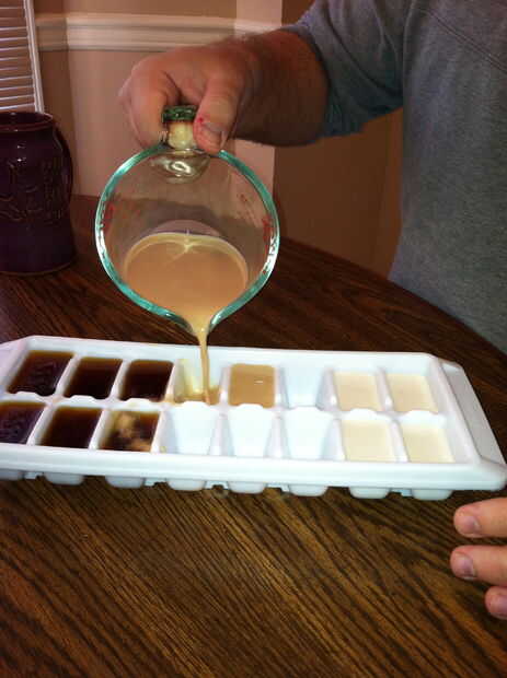 Ahora que tienes tus líquidos mixtos sólo viértalos en la bandeja de hielo.