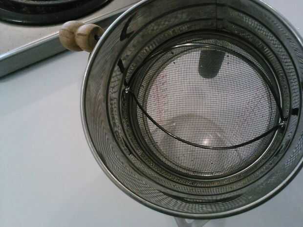 En mi caso, no pude encontrar el colador de malla, así que acabé utilizando el tamiz de la harina.