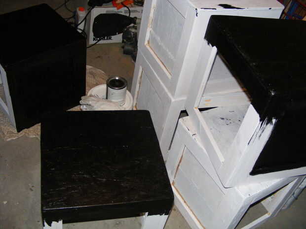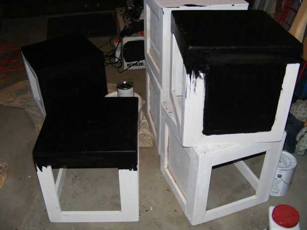 Prime los cubos. Arena para deshacerse de cualquier levantado grano. Pintar en un esmalte negro brillante resistente. Usé un marcador de la pintura de plata para agregar no paso aquí la advertencia en el panel frontal.