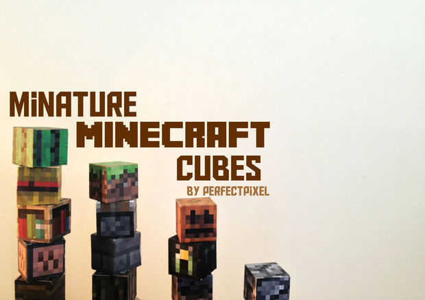 Los cubos de Minecraft miniatura son los 2x2cm y están hechos de madera que tiene papel atascado alrededor de él con las texturas de versiones miniaturizadas de los bloques de Minecraft.