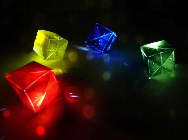 he estado trabajando en la idea de estos cubos por un tiempo. Primero estaba tratando de convertirla en un colgante, pero no podía trabajar a la batería. He querido poner la batería en el interior, pero cuando pones algo dentro un objeto que vas a luz desde el interior, se puede ver la batería desde el exterior. Por lo tanto, colgantes estaban apagados. Entonces hice un cubo utilizando papel normal. Es básicamente el mismo como se muestra en este instructable, pero luego con papel normal. Fue agradable, pero no tenía esa sensación de "wow" que estaba buscando. A continuación probé con papel transparente de colores y yo no podía haber estado más contento con el resultado final. Les espero guste!