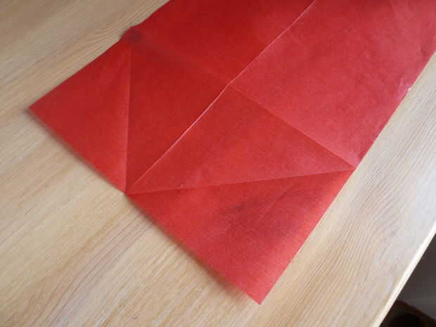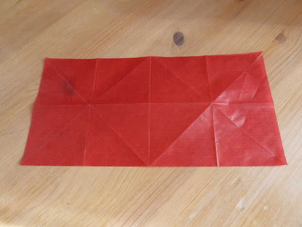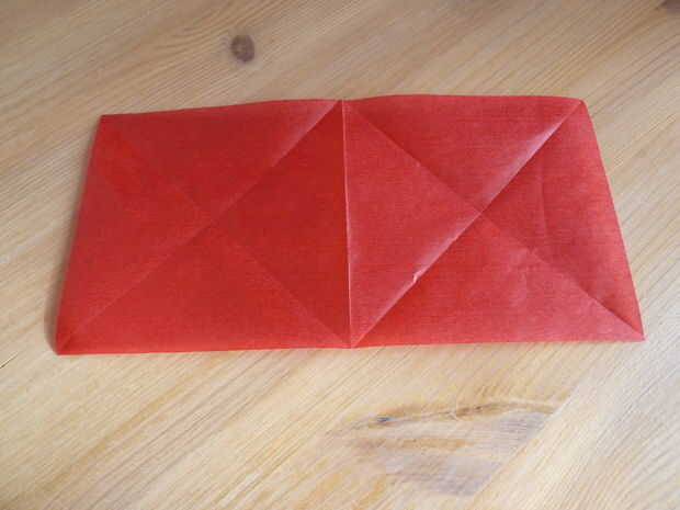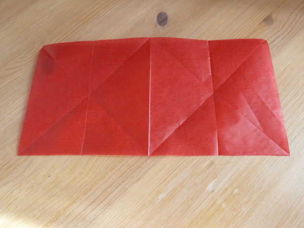 Start by folding your paper. Doblé el papel por la mitad en el lado corto, luego doblé las esquinas tocar el pliegue del medio. A continuación doblar el triángulo que acaba de crear. Desplegar estos dobleces y corte como se muestra. A continuación hay un poco de doblar y cortar (otra vez). Doblar las esquinas para el pliegue del medio en la dirección aún no se ha doblado. Se despliegan estos dos pliegues. Doble ambos lados hacia el medio, revela. El último pliegue aquí está doblando el papel por la mitad en el lado corto, desplegar este redil así.