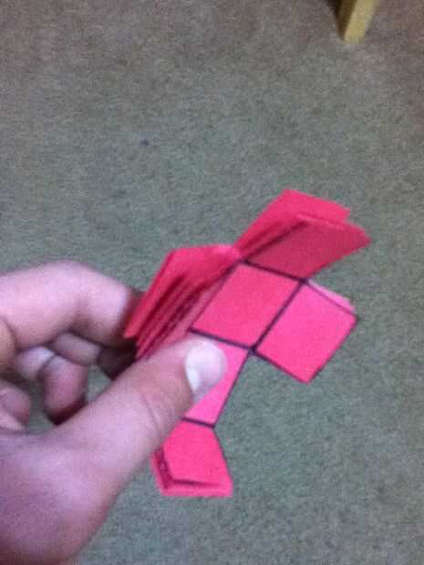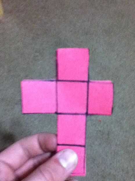 Paso 3: cortar en la parte exterior de la figura y no en las líneas que dividen los cuadrados, y una vez que son cortar, mantenerlos juntos y doblan a lo largo de las líneas interiores para hacer un pliegue como se muestra en la imagen.