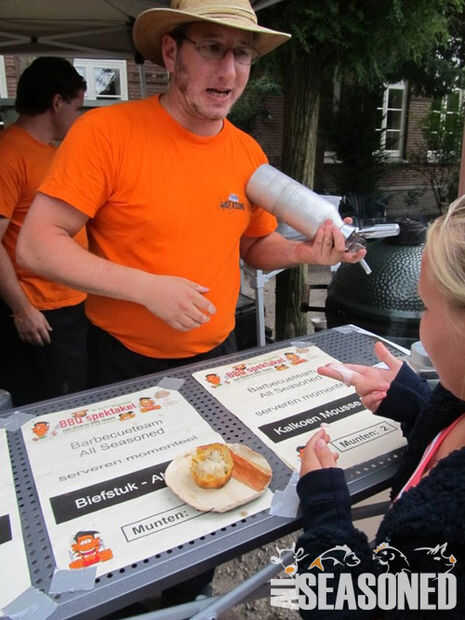 Remoje las hojas de gelatina en agua fría durante 15 minutos. Mientras tanto, calentar el jarabe, hasta un máximo de 50 grados. Exprimir la gelatina y disolver en el almíbar caliente. Una vez que la gelatina se haya disuelto, puede poner en el sifón. Utilice un filtro de decantación. Poner un bote de N2O en el sifón y agite vigorosamente. Coloque el sifón en la nevera durante al menos 2 horas establecer. Una vez que las copas están acabadas, rociar la espuma en el plato y espolvorear unas semillas de sésamo negro sobre. Y terminado!
