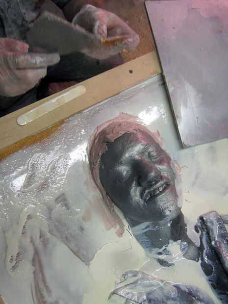 Una vez satisfecho con el look del vestido, el siguiente paso fue revestir la forma de cuerpo de espuma con un lote de resina uretano: