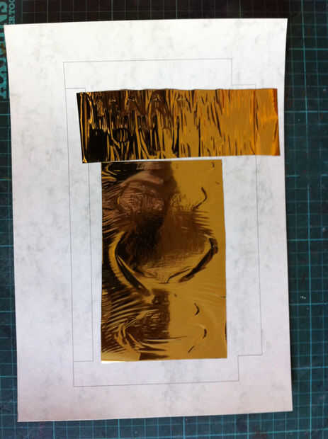 Lentamente saqué la hoja de papel de aluminio. Esto reveló la hoja de oro, ahora en condiciones de servidumbre en el papel.