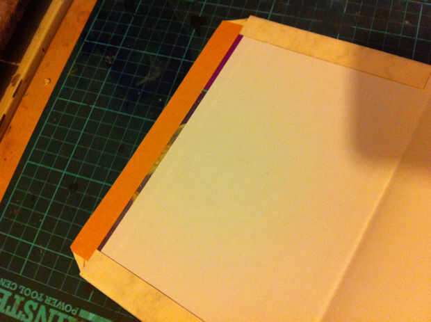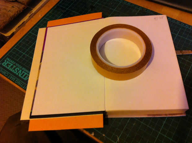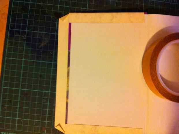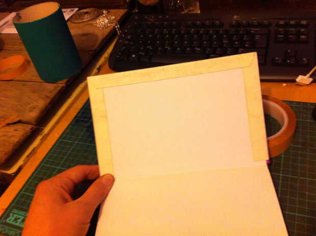 Para esto utilicé una doble cinta adhesiva de buena calidad. Aplica una tira de cinta sobre el conjunto de la parte inferior de las aletas superior e inferior, luego quita el papel soporte, carfully dobla las aletas en el borde de la tapa dura y apretada para fijar.