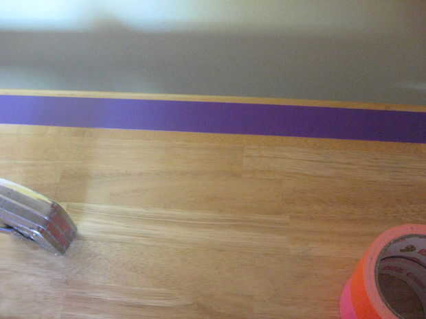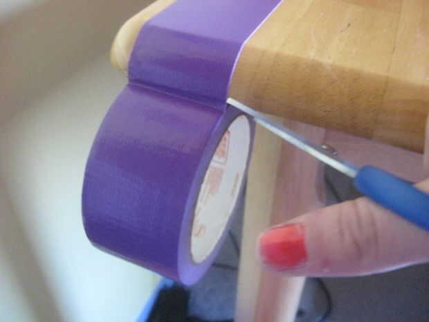 Paso dos paso tres. Coloque cinta de conducto en el escritorio.