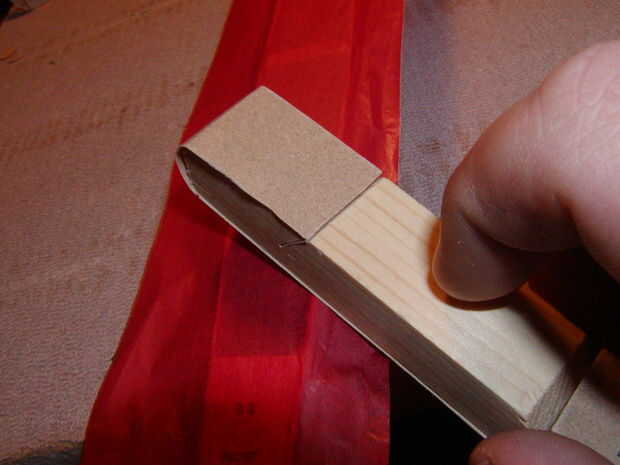-Esperar unos 10 o 15 minutos para que el pegamento endurezca y tome su lijado bloque y suavemente recorren el borde de donde apenas cubiertas para recortar el exceso de tejido. Si la arena que duro lo bien arena en la madera y no sería bueno. También puede utilizar una cuchilla para recortar el tejido así.