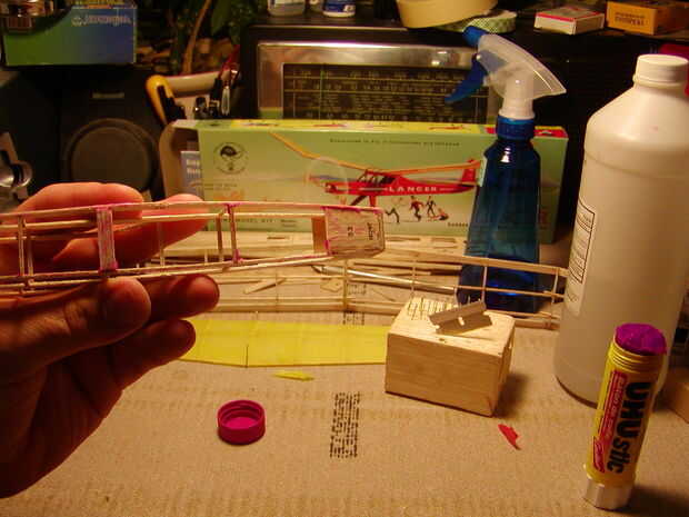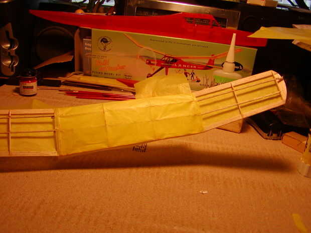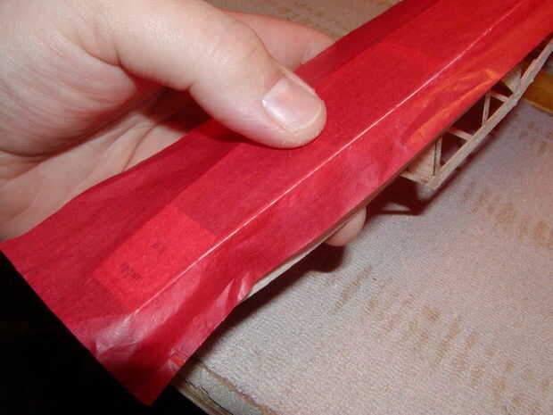 -Empezar por desplegar el tejido sobre una superficie plana lisa y poner la parte del modelo para cubrir el tejido con su longitud paralela al grano del tejido. Usando una cuchilla de corte un pedazo de tejido hacia fuera aproximadamente 1/2" o más grande la sección a, recortar un cuadro áspero alrededor de la parte funciona bien. No trate de ir a una esquina de un modelo, en la cubierta del fuselaje el fondo y los lados y finalmente la parte superior con piezas separadas de tejido.