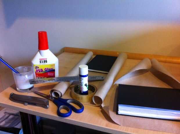 1. libros para cubrir! Cubrir los bocetos que utilizo de mi carrera para hacerlos personales me. El mejor tipo de libro para esto es uno con un mate o sin brillo cubierta como estas se unen más fuertemente con la cubierta. 2. papel para cubrir sus libros, incluso puedes usar tela, papeles más gruesos son los mejores para esto como disolvente podría rasgar o pliegue encima de demasiado. 3. pegamento, PVA o palillo, pero preferiblemente ambas. Y poco de cinta. Una olla para su cola y un separador o un cepillo. 4. tijeras, o si eres como yo, un cuchillo y regla. 5. un libre espacio y si eres impaciente, un radiador caliente o un secador de pelo.