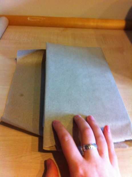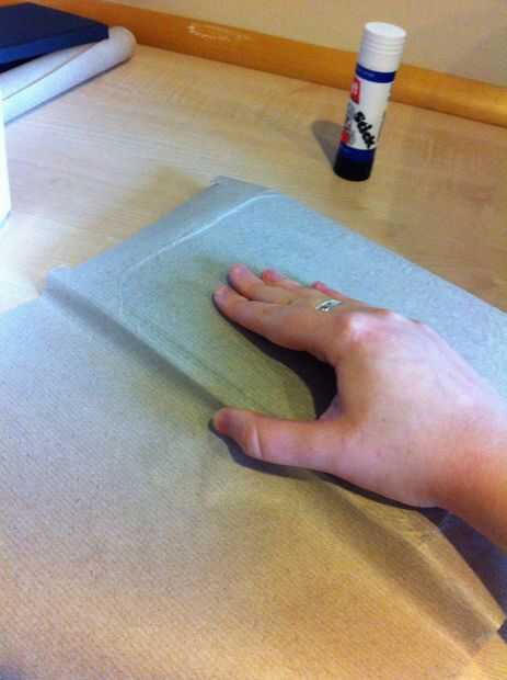 Plegar el papel sobre la superficie encolada. Mantenga el papel enseñó pero no seas bruto o se corte. con una palma plana lisa firmemente su material sobre la cubierta del centro hacia fuera en los bordes. Tenga cuidado de no dejar que el pliegue de papel, esto se convierte más si riesgo con materiales más finos. Ondulaciones en la superficie son también una posibilidad, pero no te preocupes estas desaparecerán mientras se seca el pegamento.